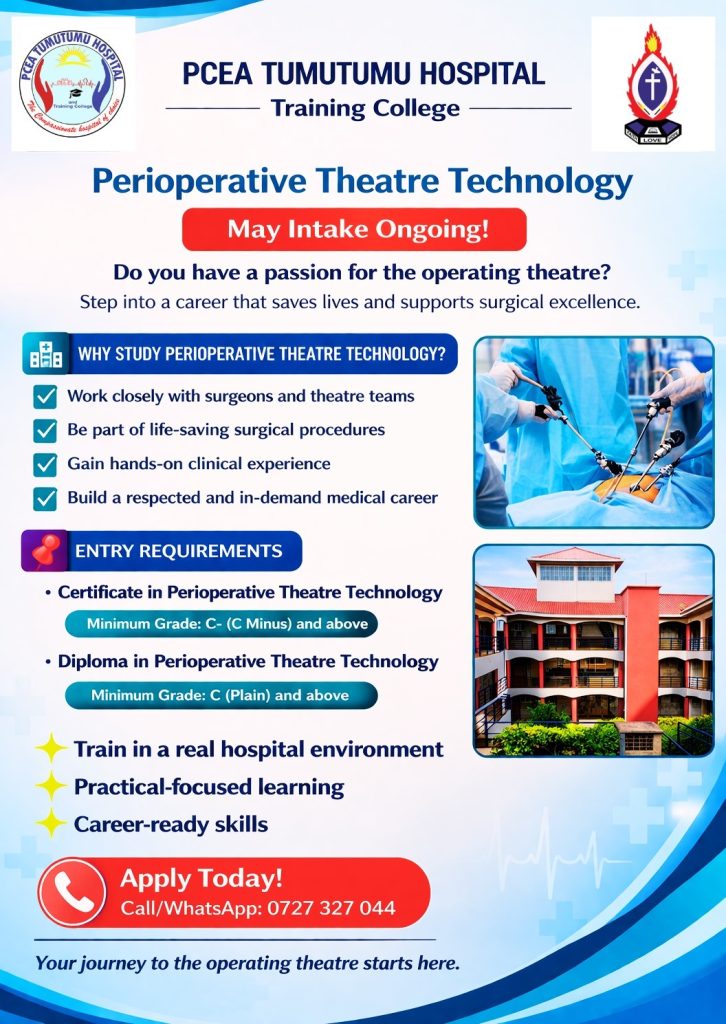 Welcome to PCEA Tumutumu Hospital Training College, where we are dedicated to training the next generation of healthcare professionals. Our college offers a range of programs designed to equip students with the knowledge and skills needed to excel in their chosen healthcare field.