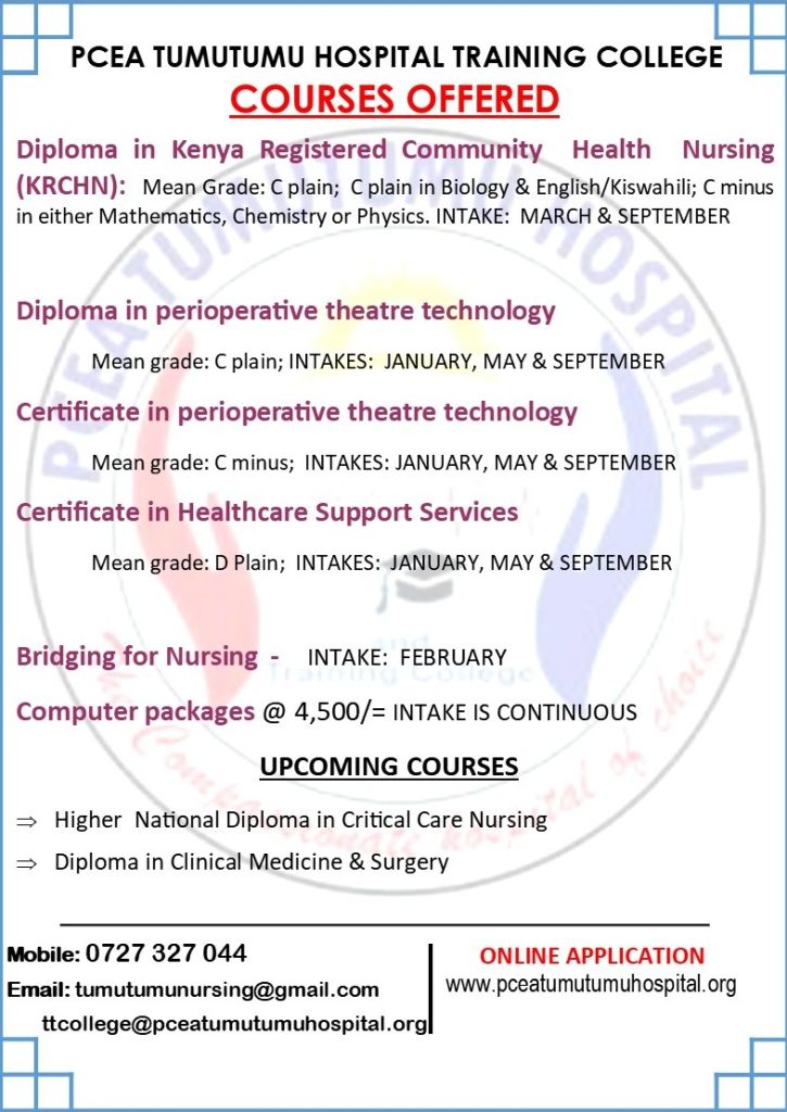 Welcome to PCEA Tumutumu Hospital’s Training College, where we are committed to shaping the future of healthcare professionals with excellence and success.